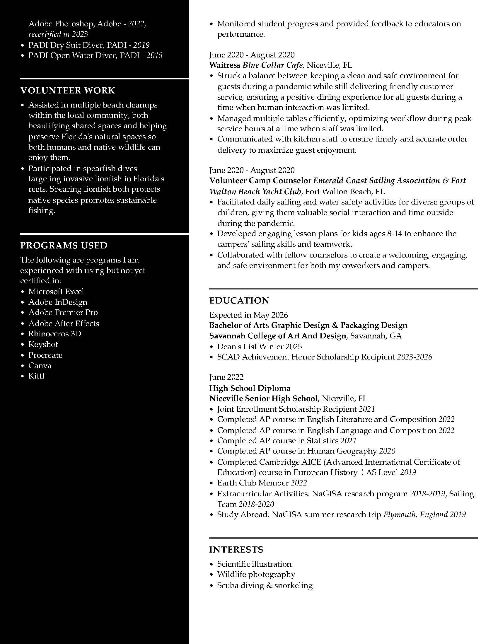 below is my current resume! it will constantly be updated throughout my career.