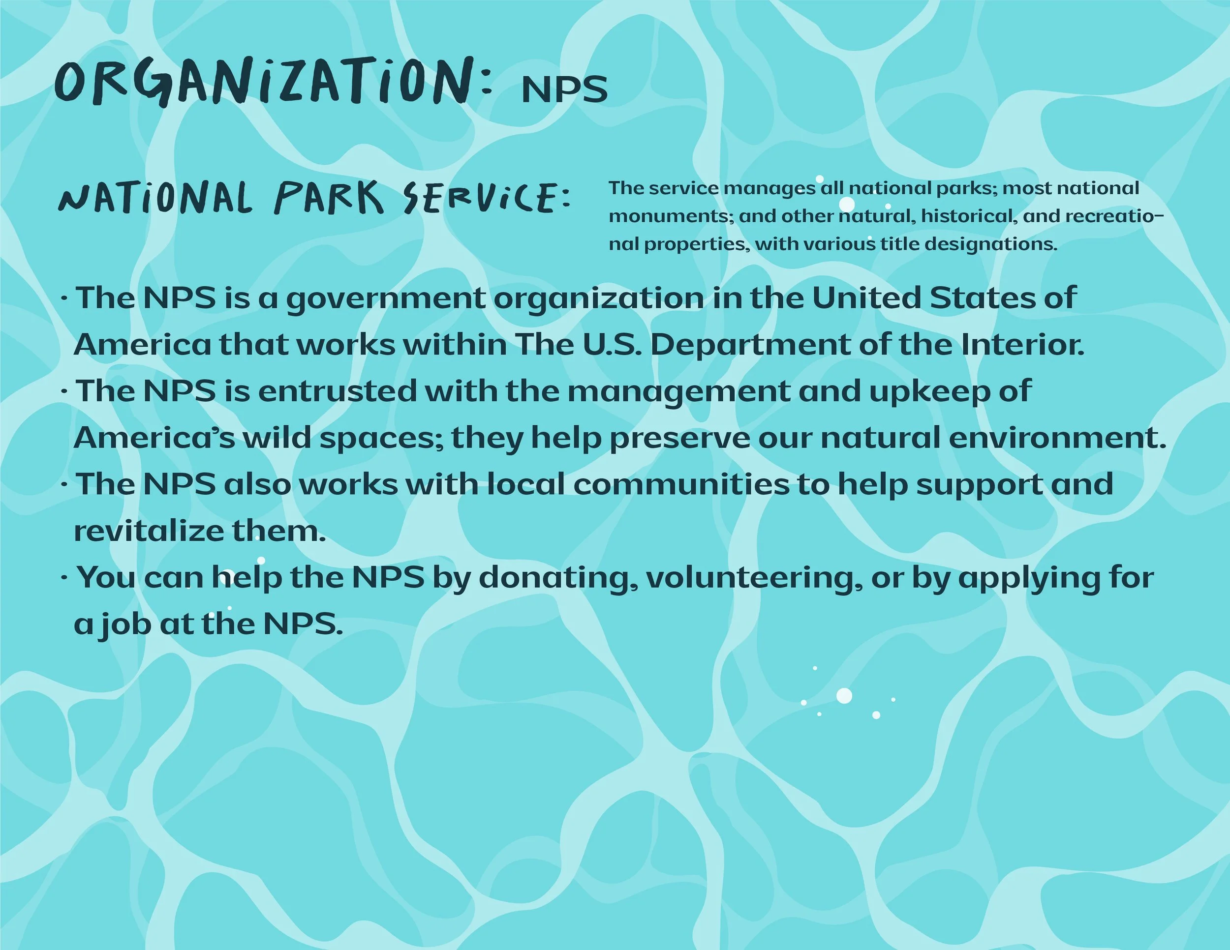 the social justice topic i chose to make a poster for was preserving america’s national parks. i chose the us national parks service as my organization.
